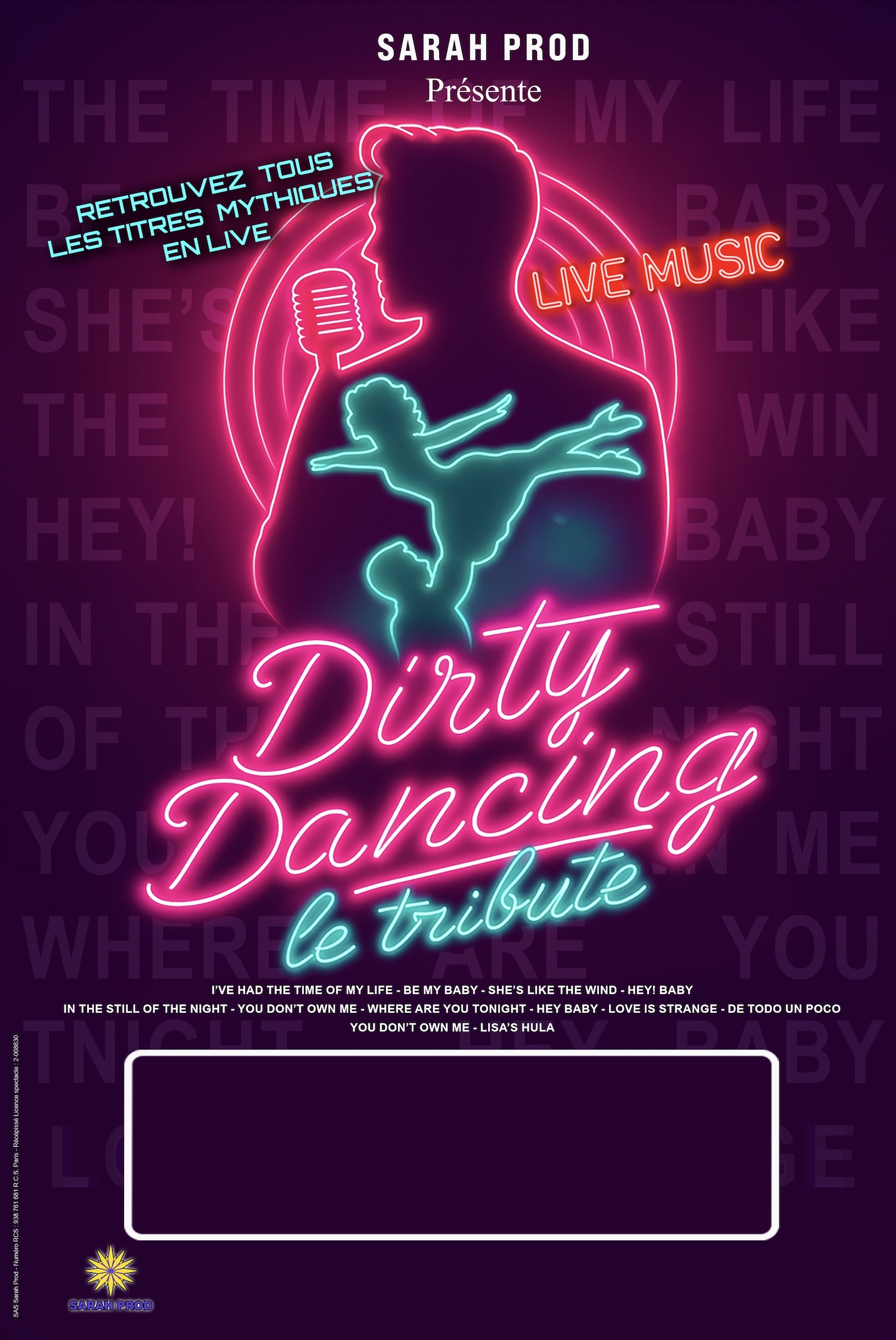 Basé sur les musiques du film Dirty Dancing sorti il y a plus de 38 ans, la tournée 26/27 passera par plus de 30 villes, dans toute la France ainsi qu’en Suisse et en Belgique. Magnifique expérience que celle du DIRTY DANCING LE TRIBUTE CONCERT avec la Song List des chansons culte qui ont marqué plusieurs générations.