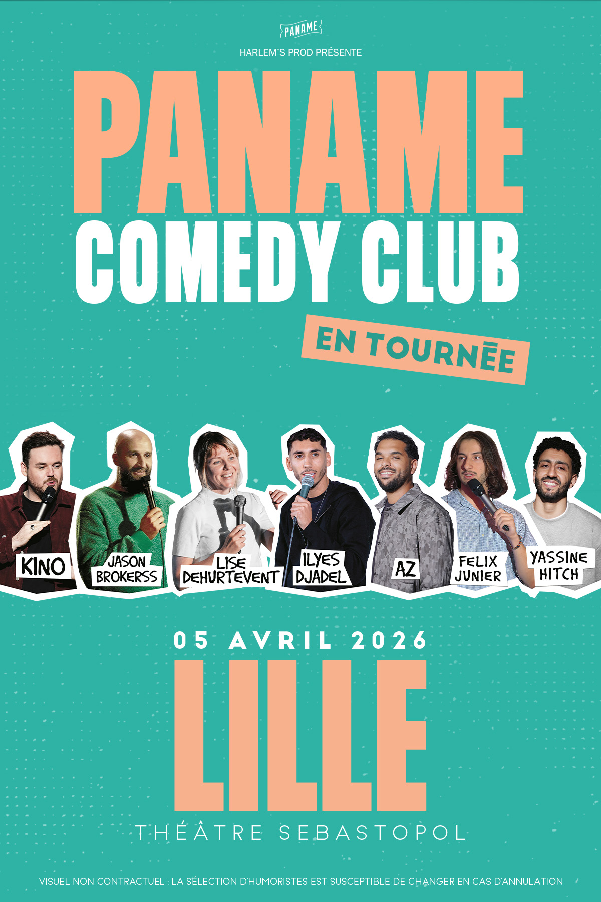 Le Paname Comedy Club En Tournée présente une sélection d’humoristes programmés au Paname Comedy Club et/ou invités par la production dans l’esprit du Paname Comedy Club pour la tournée. Cette sélection peut être susceptible de changer sur la représentation en cas d’annulation d’un des humoristes. Celui-ci sera remplacé par la production. Les visuels sont non-contractuels