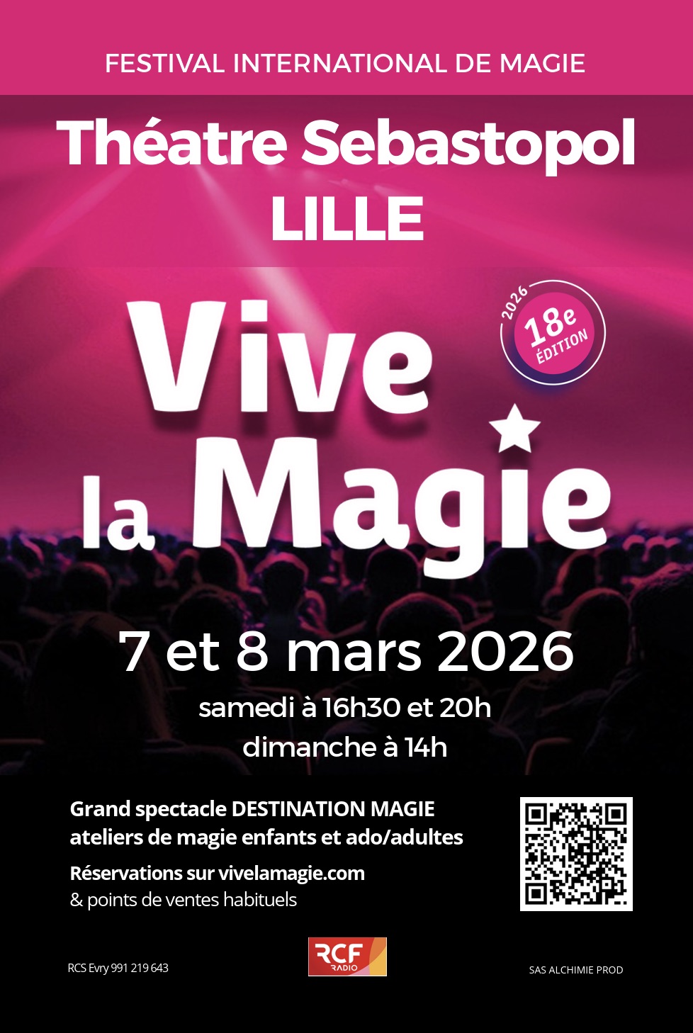 Vive la Magie , le festival de toutes les magies ! Ne rien comprendre et aimer ça ! Ce n’est pas une illusion : le Festival organise sa 18ème édition et l’équipe est aux petits soins pour vous préparer une saison digne des plus beaux anniversaires. Le mystère … L’extraordinaire… La poésie… L’humour… en un mot : la Magie !